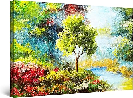 Startonight Impression Sur Toile Seul Arbre Paysage Vert Rouge Jaune - Tableau Paysage - Decoration Murale Salon Moderne - Image sur Toile - 60 x 90 cm: Amazon.fr: Cuisine & Maison