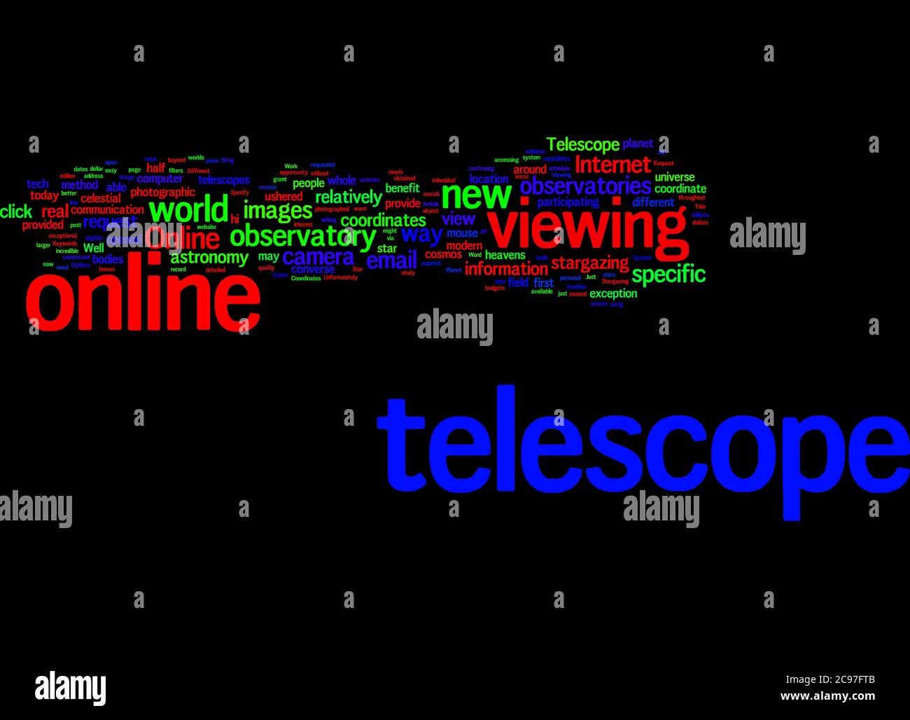 Word Cloud Summary of article Stargazing Through An Online Telescope Stock Photo - Alamy