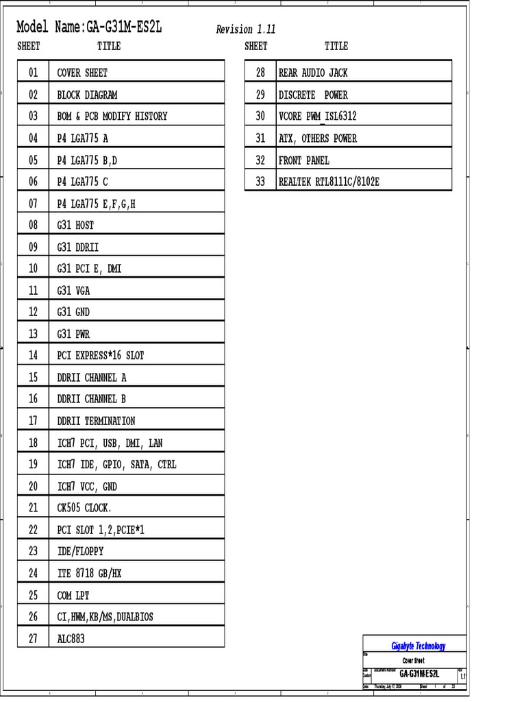 Gigabyte Ga G31m Es2l Schematics 1 Pdf Computer Networking Computer Architecture